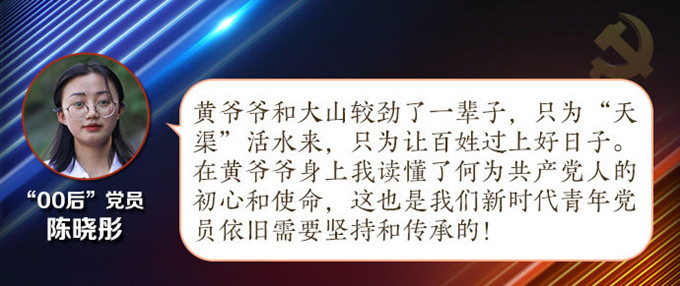 编者按: 百年初心,历久弥坚。 从战火纷飞到河清海晏,初心不改的高龄党员如何看今日之中国?风华正茂的青年党员又当如何奋进新时代? 中国共产党建党百年之际,荔枝新闻推出《跨越时空的对话丨“00后”大学生党员对话老党员》系列报道,用信仰串联时空长河,以对话感悟初心、传承使命。 “摇一摇,让棉线沾上墨,一个人拽着线头,量准位置一弹,就有了直线。没有这东西,渠就修不整齐”,黄大发用手轻轻转动破损了的墨盒,一边对陈晓彤回忆着在崖壁上凿渠的经历。
