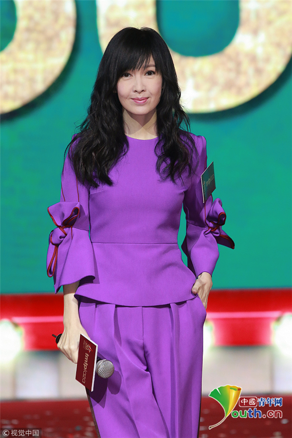 周慧敏紫色套装优雅华贵 纤细腰身女神气质爆棚