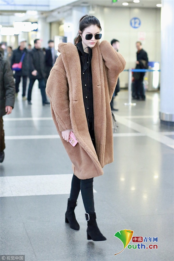 2018年11月30日,北京,何穗现身机场,完美的超模身材驾驭羊羔毛大衣毫无压力。她扎着干练的马尾,对着镜头挥手主动打招呼相当nice。