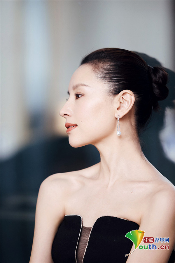 董洁穿黑色抹胸裙展优雅风情 天鹅颈诠释骨感魅力