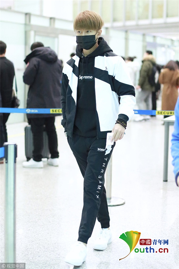 2018年12月21日,北京,任嘉伦现身机场。戴着口罩的他被一众迷妹追随,面对粉丝送的礼物,任嘉伦耐心收下超宠粉。