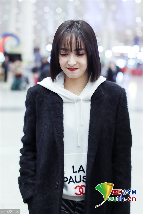 2018年12月29日,北京,宋茜现身机场。宋茜身穿黑色大衣内搭白色帽衫时髦青春展活力,秀发飞扬单手插兜酷劲足,不时抿嘴偷笑发射可爱小表情冲击波暴露了甜蜜少女心。