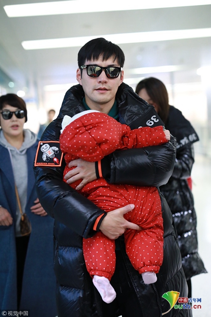 2018年12月31日,上海,严屹宽、杜若溪一家三口现身上海虹桥机场。严屹宽和杜若溪身穿黑色情侣装秀恩爱, 他紧抱萌娃实力演绎奶爸魅力,一家三口同框幸福满满。