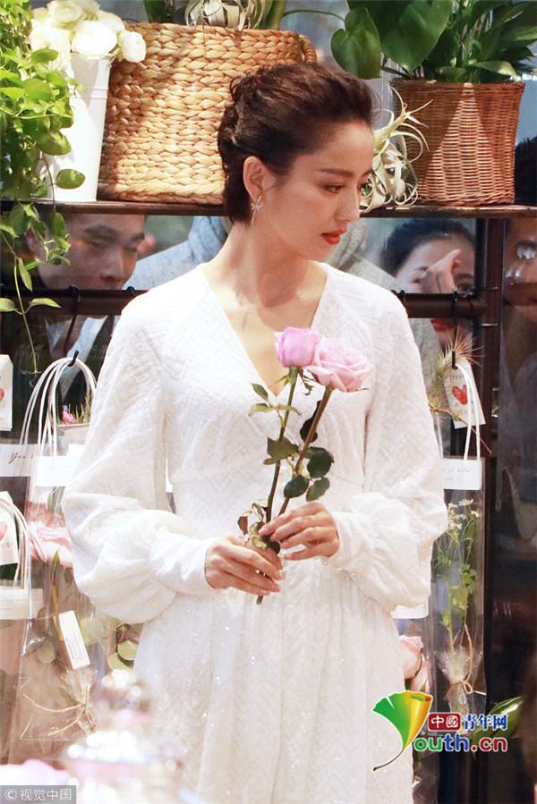 2019年1月4日,上海,佟丽娅出席某品牌活动。她穿一袭白裙仙气满满,举花灿笑美似仙子。