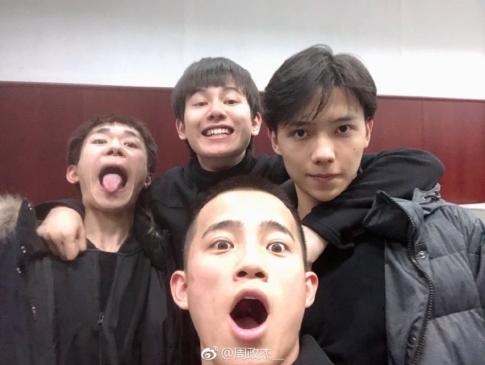 9日晚,易烊千玺大学同学在微博晒出宿舍四人组考试完的合影,其中千玺和胡先煦毫无偶像包袱,面对镜头搞怪做鬼脸,青春活力,画面有趣。