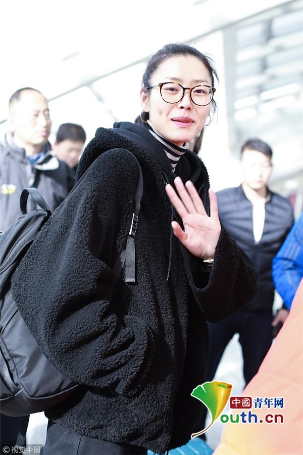 2019年1月25日,北京,刘雯现身机场。她扎丸子头戴眼镜素颜现身机场,全黑LOOK依然气场十足,一左一右两手推箱子力大无比,对镜头微笑露出她标志性的酒窝。