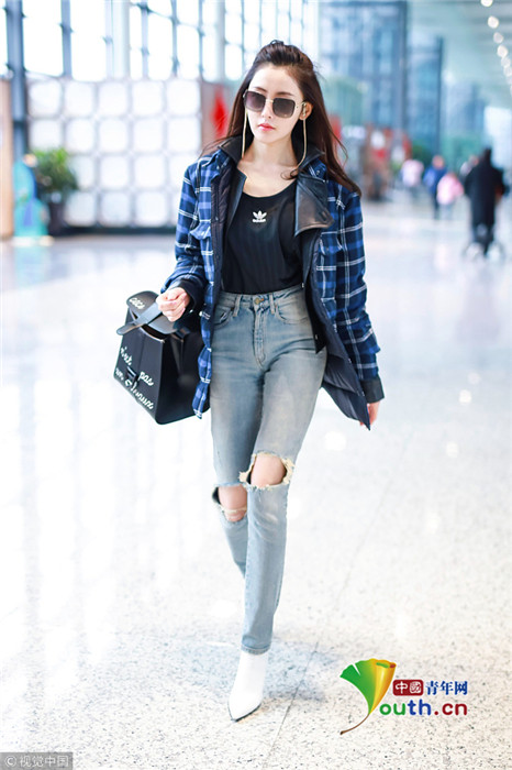 2019年2月1日,上海,张天爱现身机场。她身穿担保内衫外披格子衬衫,下身穿着破洞裤,左右开工拎着大包行李似回家过年,随时随地扎头发率性不羁,而摘下墨镜看粉丝手机的行风则显得略微搞笑。