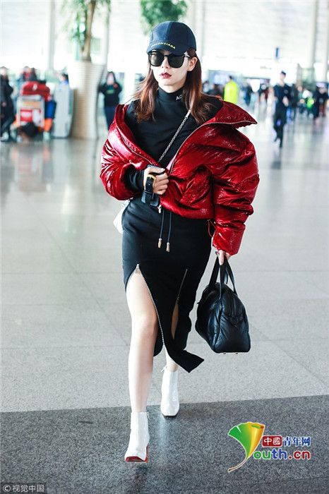 2019年2月1日,戚薇从北京机场飞往上海机场。她半披着红色羽绒服,下身穿着个性短裙,开叉到大腿跟实力演绎“最强辣妈”,机场变T台,惹眼吸睛,之后她又拿着一个彩虹棒玩具玩不停,立显反差萌。
