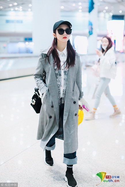 2019年2月9日,北京,孟美岐观秀归来现身机场。她穿格纹大衣搭配黑超酷劲十足,机场迈步带风似行走的画报,尽显迷人魅力获粉丝接机。