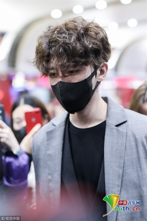 蔡徐坤灰色西装戴口罩低调现身 遭大批迷妹围堵
