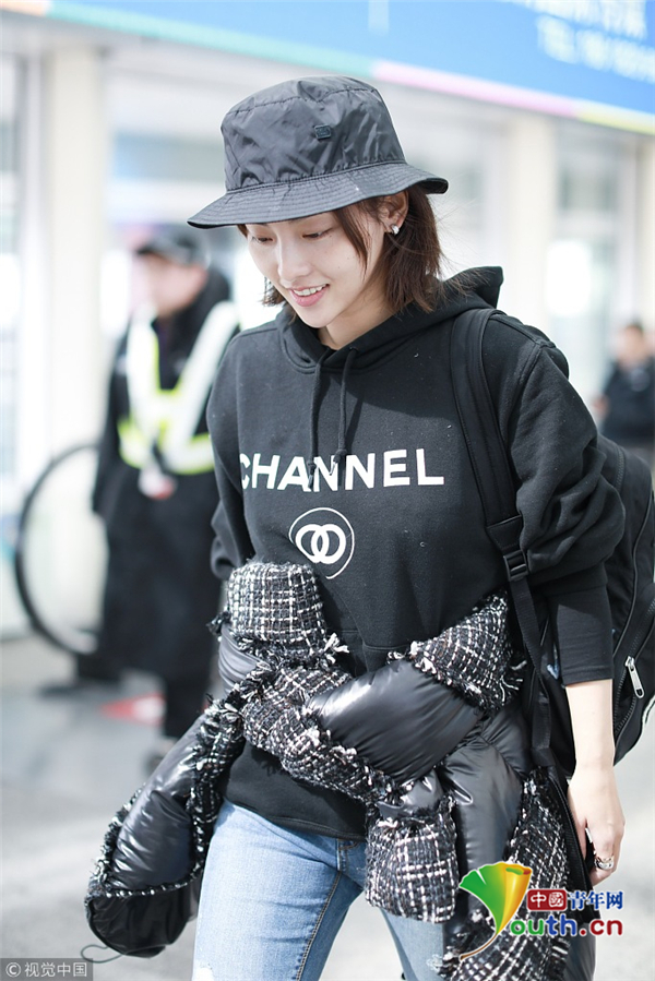 3月6日,北京,张嘉倪现身机场。她穿着黑色香奈儿卫衣,腰间系着香奈儿外套,化身“人间香奈儿”。素颜皮肤白皙通透,戴渔夫帽头发随意披着,展现“随性美”。