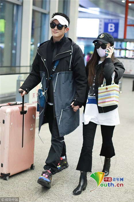 2019年3月11日,北京,霍思燕、杜江现身机场。夫妻俩一身休闲运动装束,戴着同款墨镜,携带超多行李现身,全程十指紧扣恩爱满分。