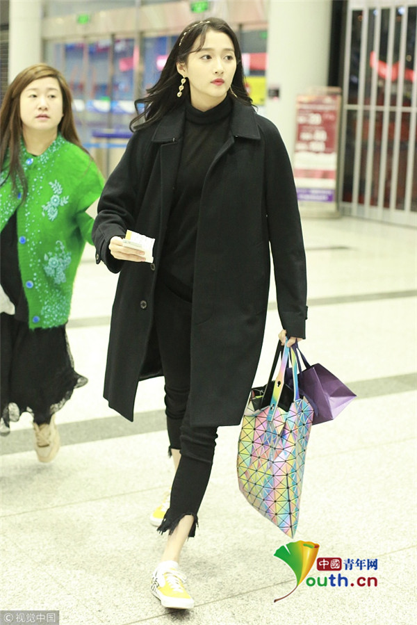 2019年3月12日,北京,关晓彤现身机场奔跑赶飞机。她一身全黑装扮简约帅气,奈何发现飞机将起飞,一路拎包狂奔偶像包袱全无,黑风衣飘逸长腿瞩目。