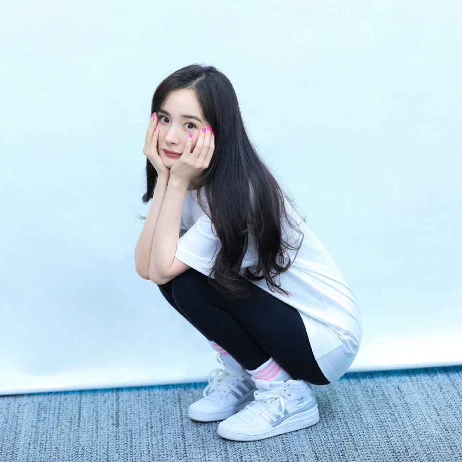 3月17日,工作室晒出杨幂近照,照片中杨幂穿白T恤黑裤子造型简单,粉色美甲十分有春天氛围。