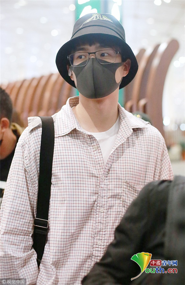 2019年3月20日,北京,刘昊然现身机场。他戴着渔夫帽十分低调,拉下口罩依稀可见小胡茬十分性感,穿白色小格子衬衫酷似搓澡巾,十足的阳光大男孩模样。