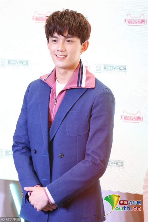 吴磊身穿“粉蓝”混搭西装 头发微卷帅气有型