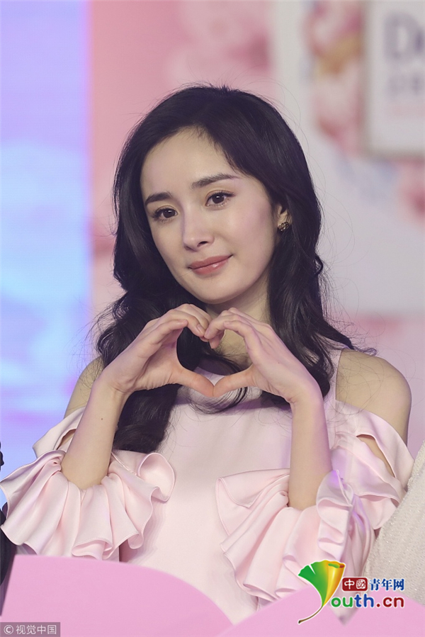 3月25日,北京,杨幂出席某活动。她身穿粉嫩睡裙,两条细长美腿相当吸睛, 在台上抱着“抱枕”俏皮比心温柔甜笑。