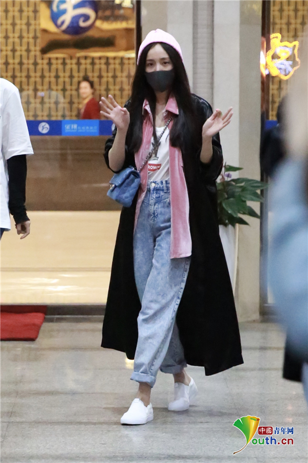 2019年4月18日,湖南长沙,杨幂现身机场,前往长沙录制综艺。她穿极简装戴小粉帽暴露少女心,获粉丝围堵接机寸步难行,鞠躬挥手表示感谢亲和力爆棚。