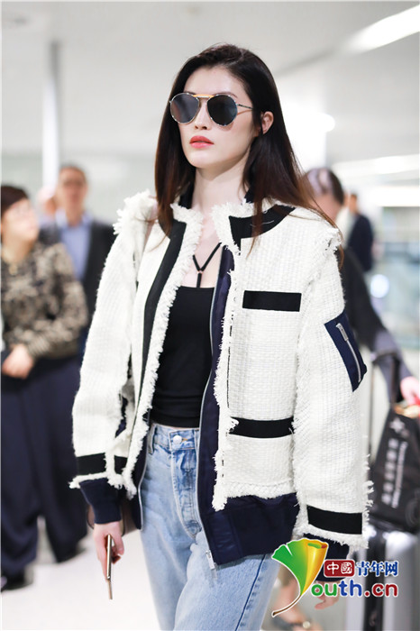 2019年4月22日,上海,何穗抵达上海机场,她墨镜遮面造型时尚,上演撩发杀,秀无敌大长腿。