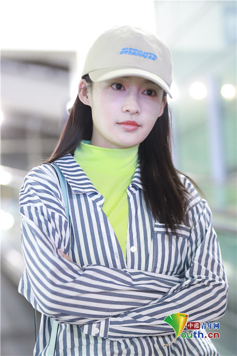 2019年4月25日,北京,李沁现身机场。她穿荧光绿内搭春天气息满满,挎包赶路长腿吸睛,全程浅笑美艳少女范。