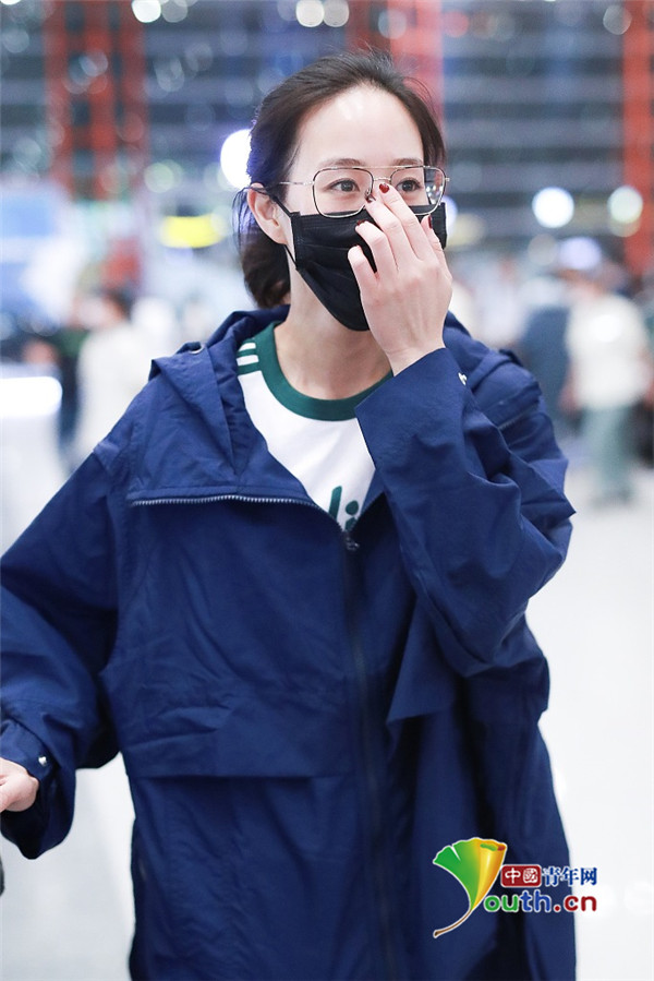 2019年5月6日,北京,张钧甯现身机场。她身穿蓝色风衣搭配牛仔裤,戴着眼镜忙赶路,尽显干净清爽的女神气质。
