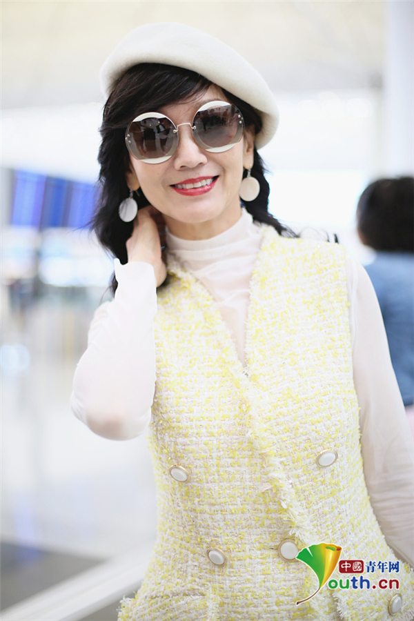 5月14日讯,香港,赵雅芝现身机场。黑超遮面的她戴着贝雷帽,身着一袭浅色套裙,挎着大牌包,整体造型十分俏丽可爱,见记者跟拍一路笑脸相迎,相当亲和!