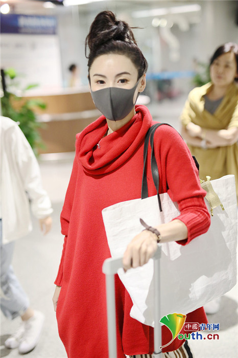 2019年5月20日,北京,张柏芝亮相机场,她口罩遮面露出白皙肌肤,身穿红色毛衣搭配条纹休闲裤造型吸睛,丸子头高耸少女感十足,简直回到18岁。