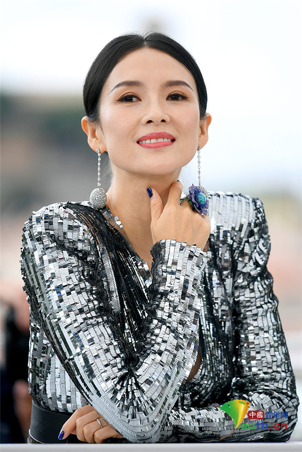 当地时间2019年5月21日,戛纳,第72届戛纳国际电影节,章子怡出席\"Rendez Vous With Zhang Ziyi\" 见面会。作为中国影人,章子怡获电影节主席福茂牵手亮相发布会,排面超大,她身穿银色垫肩裙装霸气亮相,戴着球状耳坠活泼可爱,整个人闪闪发光,简直美Cry。