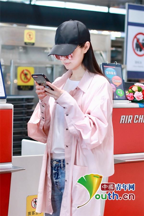 宋轶破洞裤配粉色衬衫 素颜皮肤白皙频刷手机