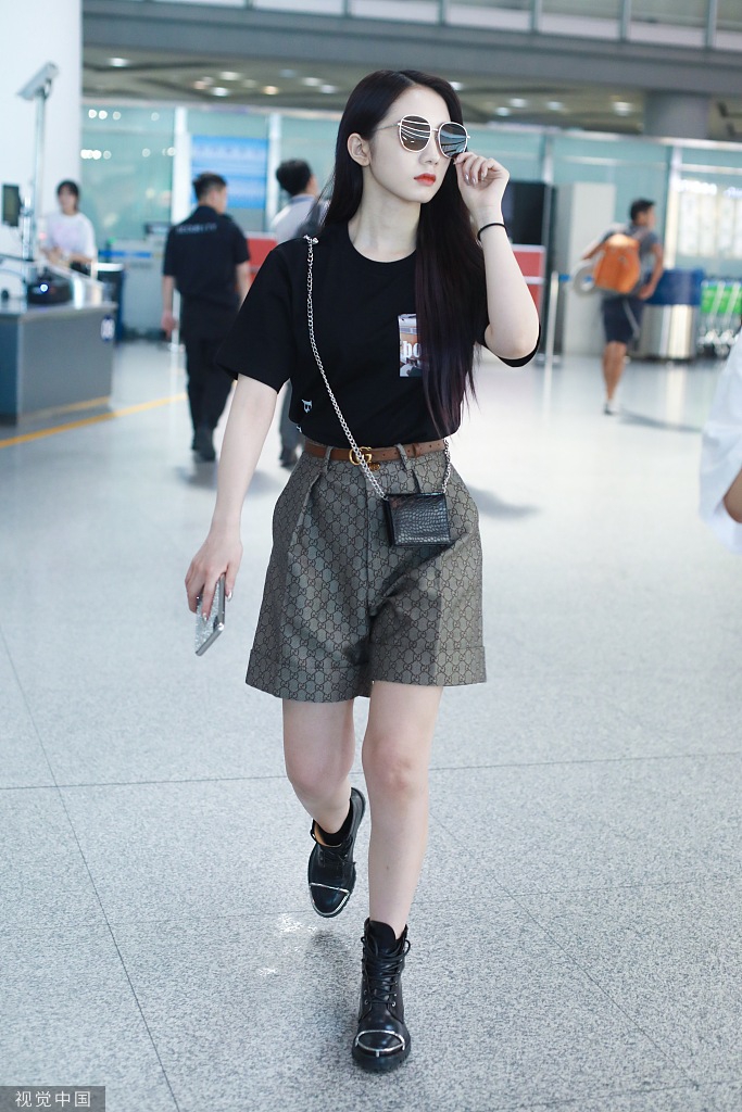 6月10日,火箭少女现身机场。孟美岐攻气max,瘦了不少的段奥娟表情呆萌,赖美云穿长t恤挎腰包化身运动少女,李紫婷工装风秀香肩,傅菁流苏T恤热裤秀美腿,紫宁长发披肩小秀香肩。