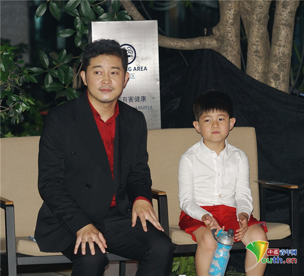 2019年6月16日,上海,沙溢、胡可、安吉一家三口参加2019中影之夜。沙溢、安吉动作表情神同步似复制粘贴。