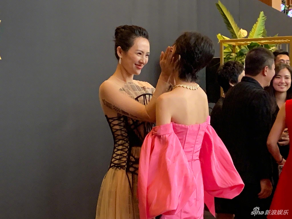 6月16日,微博电影之夜在上海举行。活动期间的一组幕后照曝光,两代谋女郎章子怡和周冬雨同框,章子怡捧着周冬雨的脸,表情宠溺,两人还相拥,看起来感情不错。