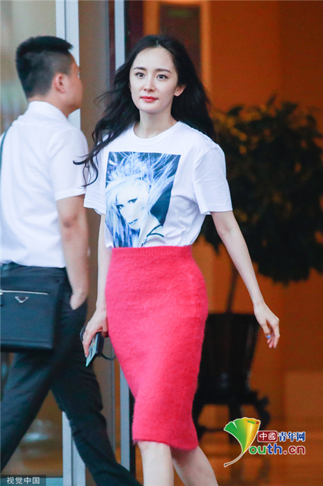 2019年6月24日,北京,杨幂现身机场。她头戴白色鸭舌帽显低调,身穿白色T恤下搭玫粉色包臀裙,与荧光粉运动鞋相呼应十分抢镜,走路带风大秀美腿,撩发尽显女人味。