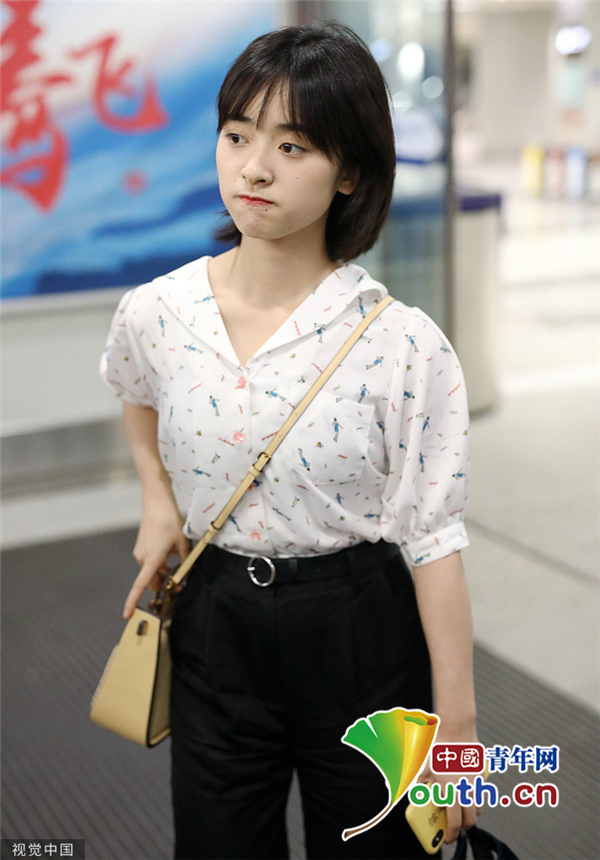 2019年6月29日,北京,沈月现身机场 ,她留着甜美刘海愈发清纯可爱 ,文艺范儿女神实至名归 ,噘嘴狂卖萌。