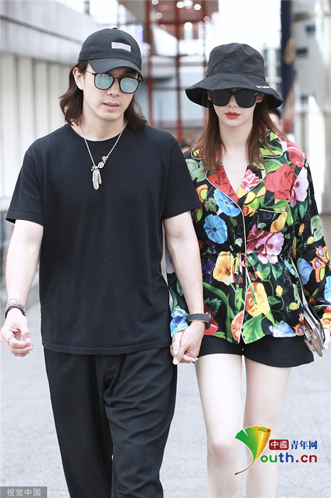 养眼夫妇!戚薇穿花衬衫配热裤与老公紧牵依偎