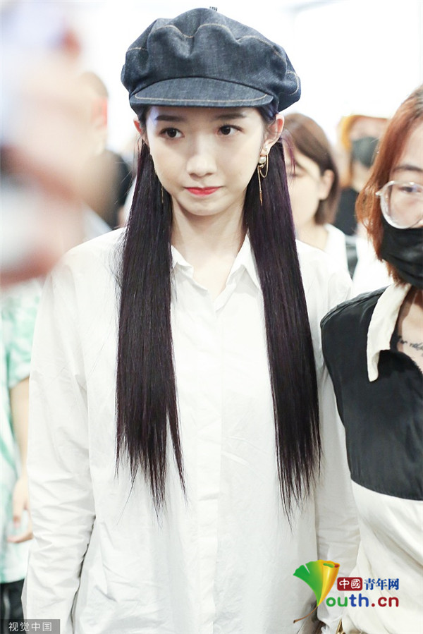 2019年7月14日,北京,孟美岐现身机场。她身穿一身白衣仙气飘飘,黑色长发披肩展清纯古典气质,回眸挥手暖心十足。