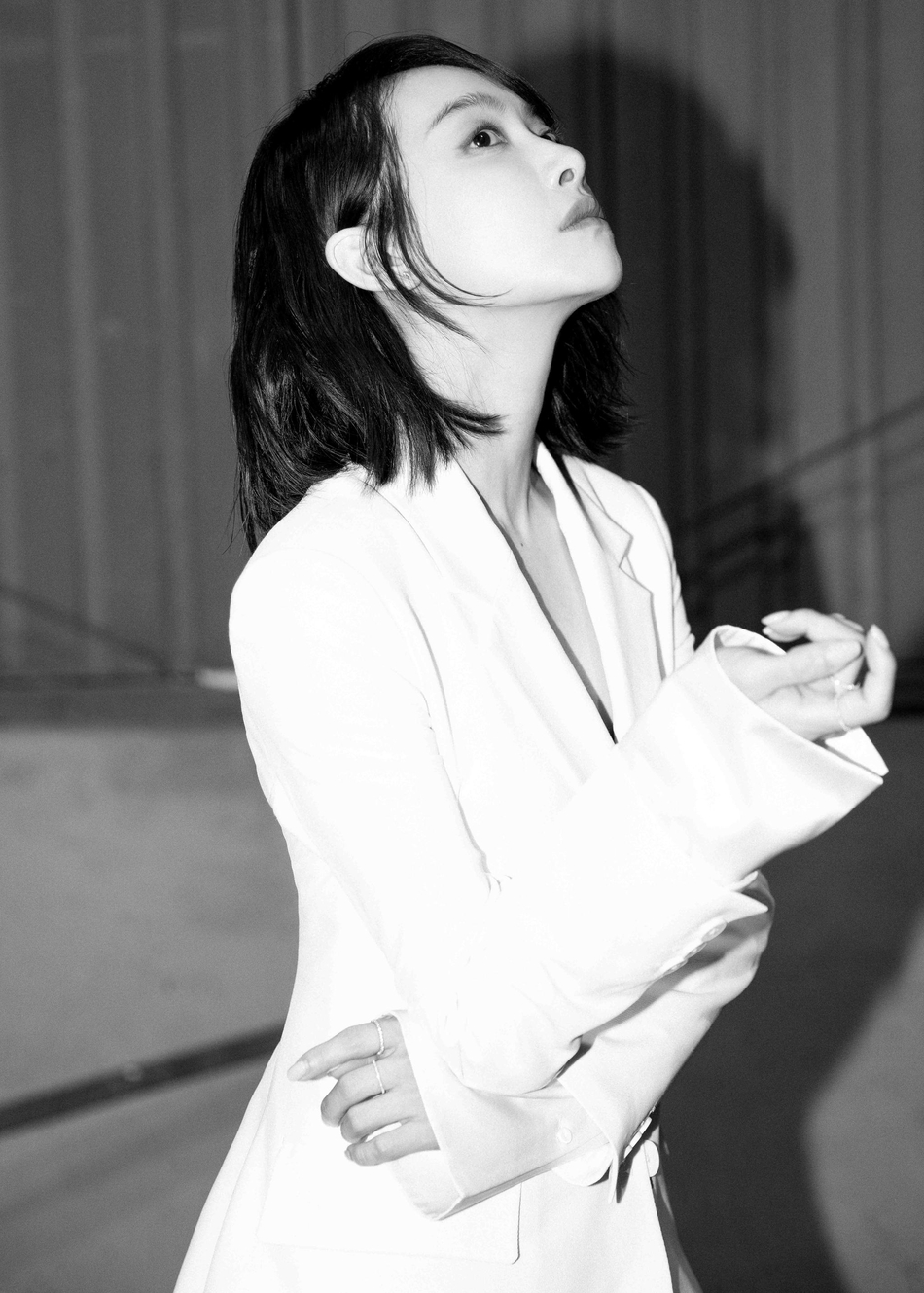 宋茜镜光裙搭白西装秀傲人长腿 波浪短发清爽干练