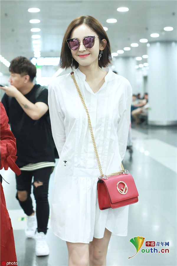 近日,古力娜扎现身机场被拍。古力娜扎穿白色衬衫裙大秀美腿,面戴黑超留齐肩短发气场足。