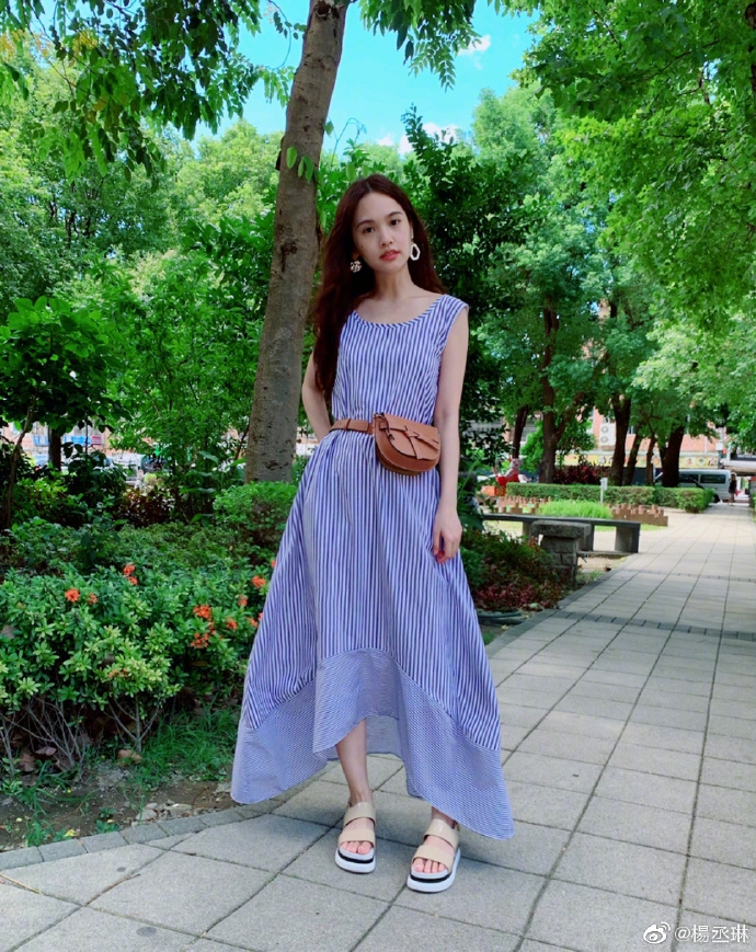 7月31日,杨丞琳在微博晒出一组美图,配文:“无畏付出就有回报!选择心动的人不会错!今天的侦探阿琳也是为君君和凯雯加油的一天。”照片中她穿着蓝色无袖条纹裙,搭配棕色腰包清新时髦,棕红色的长卷发随风飘扬,笑容十分甜美。