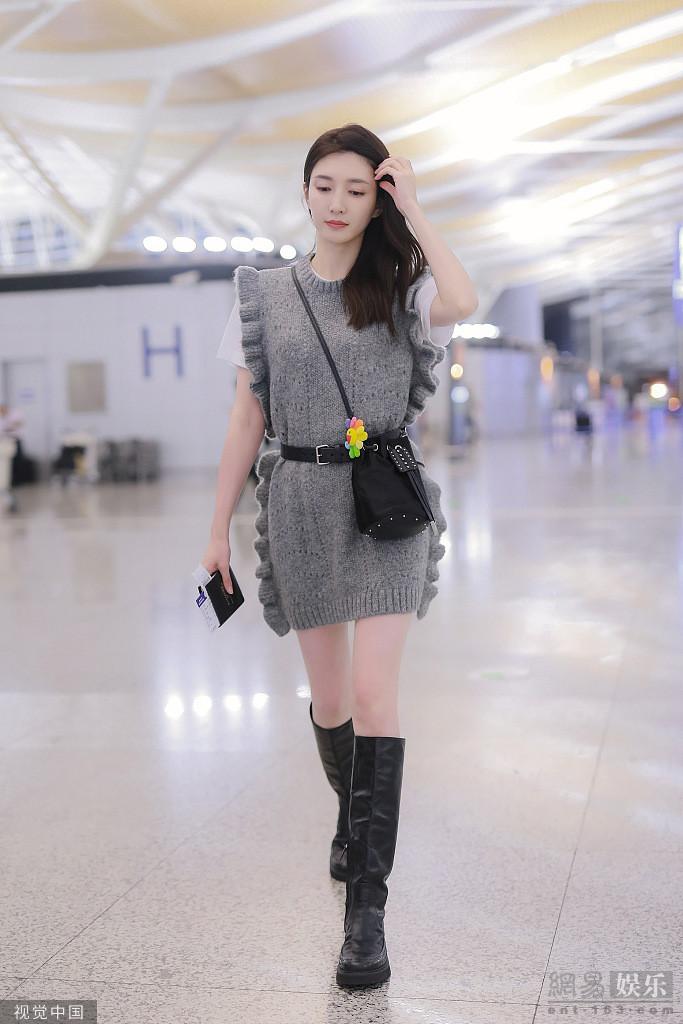2019年9月19日,上海,江疏影现身机场。她披散一头长发身穿灰色花边连衣裙,大配黑色长靴秀出白嫩长腿,背包上的彩色小花装饰很是可爱。见到跟拍后,江疏影背过双手微笑出镜歪头卖萌,简直甜化了!