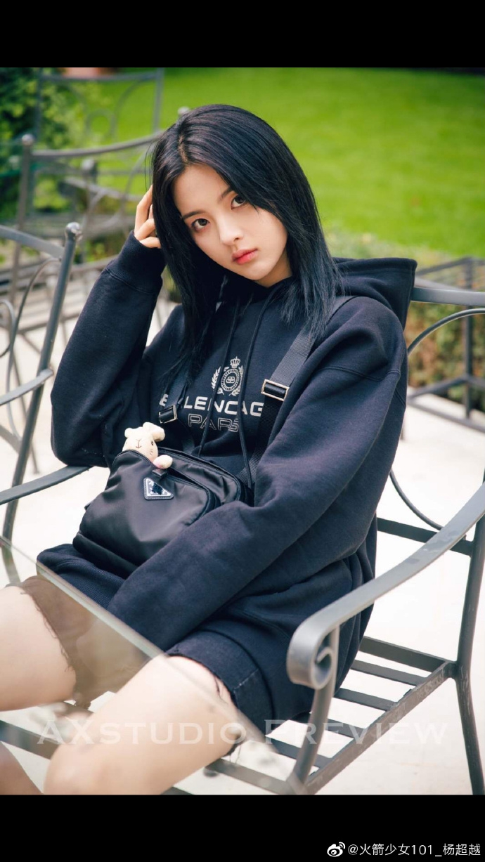 10月11日,杨超越在微博上晒出一组个人美照,并配文:“黑色女巫。”照片中,杨超越全身Look街头酷炫摆拍,细腿迷人表情可爱。