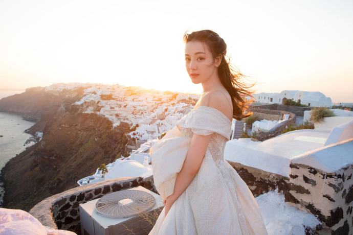 10月16日,迪丽热巴工作室晒出一组美照,热巴穿吊带蕾丝裙显好身材,一字肩婚照造型绝美迷人。