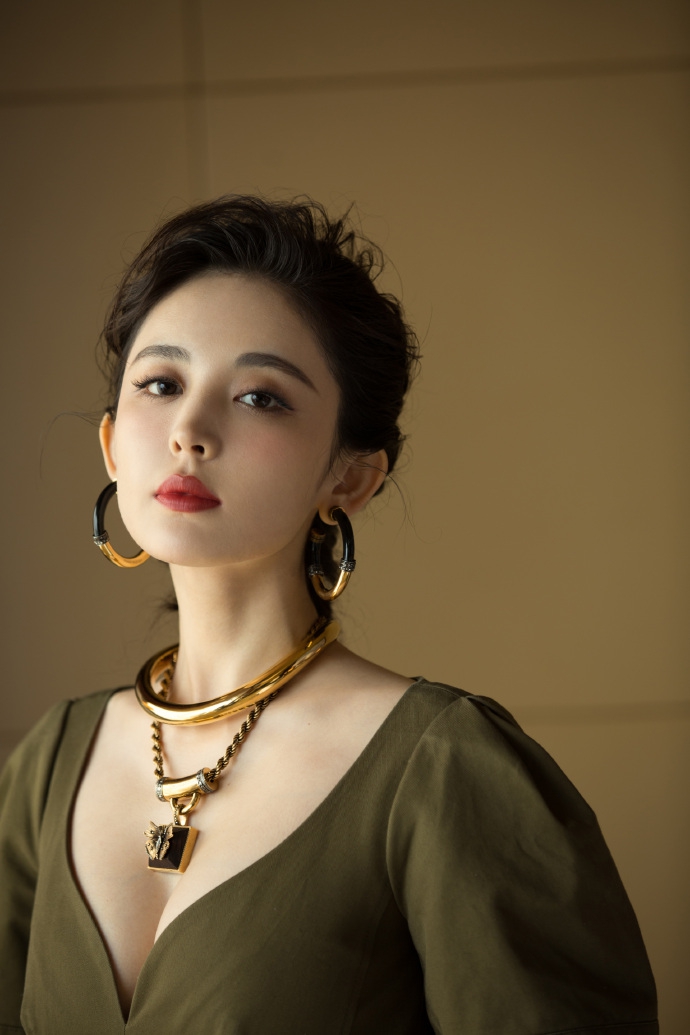 近日,娜扎出席活动一组写真大片曝光,身穿卡其色斜纹连衣裙复古优雅,廓形夺目,搭配同色系腰封,美娜上线。