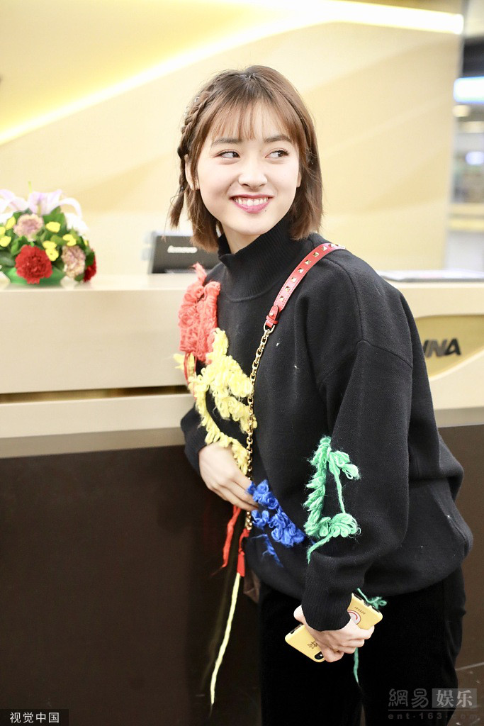 11月1日,北京,沈月现身机场。她编发造型清新甜美,穿个性卫衣十足吸睛,趴柜台回眸甜笑秀“表情包”,可爱满分。