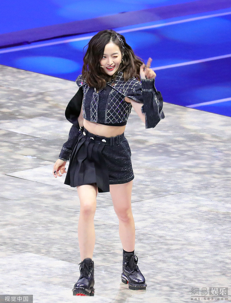 2019年11月0日,上海,第二届超新星运动会 。吴宣仪以一袭露脐装搭配热裤踩皮靴亮相,携“火箭少女”带来开场歌舞 ,露蛮腰秀美腿眨眼放电热辣十足,气氛燃爆全场。