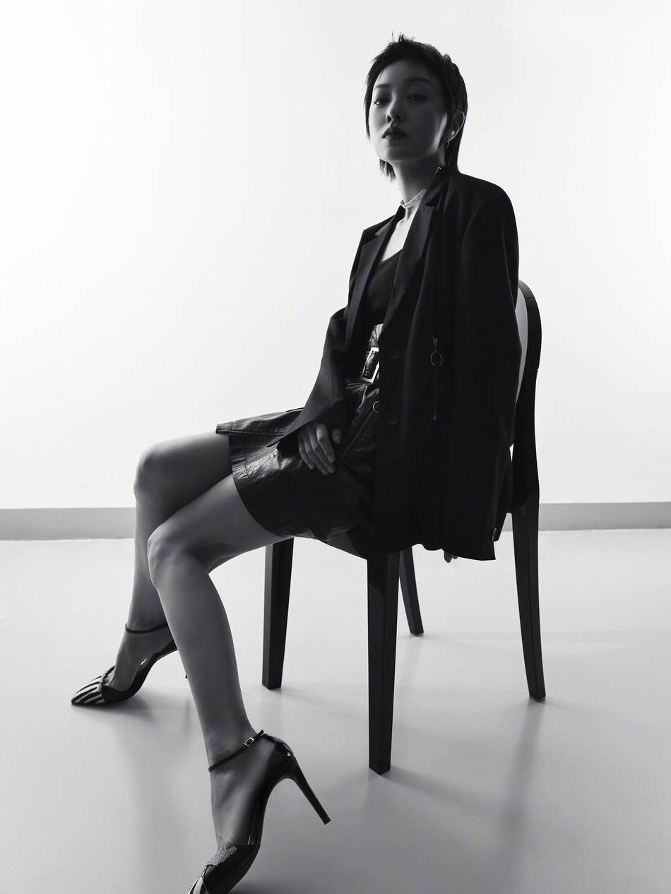 近日,郭采洁在微博晒出一组黑白写真,她身穿黑色短袖踩高跟鞋秀出修长美腿,黑色西装外套配利落短发飒气十足。
