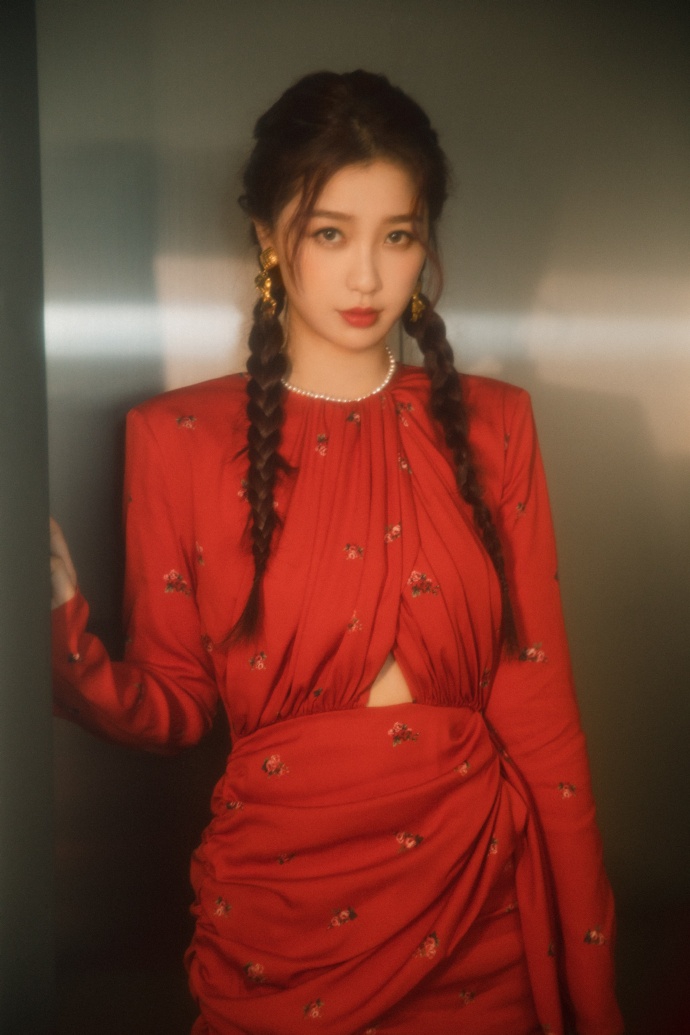 近日,虞书欣工作室晒虞书欣节目美图。照片中,虞书欣穿碎花红裙,腰部曲线微露,复古又时尚。扎拳击辫又酷又飒,和古灵精怪的她十分相配。