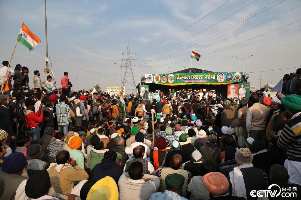 当地时间2021年1月30日,印度新德里,反对新农业法案的农民持续抗议。报道称,当地时间1月30日,印度内政部表示,新德里郊区发生抗议活动的三处地点的网络服务已被暂停至当地时间1月31日23时,以“维护公共安全”。路透社介绍,印度政府经常在他们认为会发生骚乱的地点切断互联网服务,但此举发生在首都仍是不寻常的。