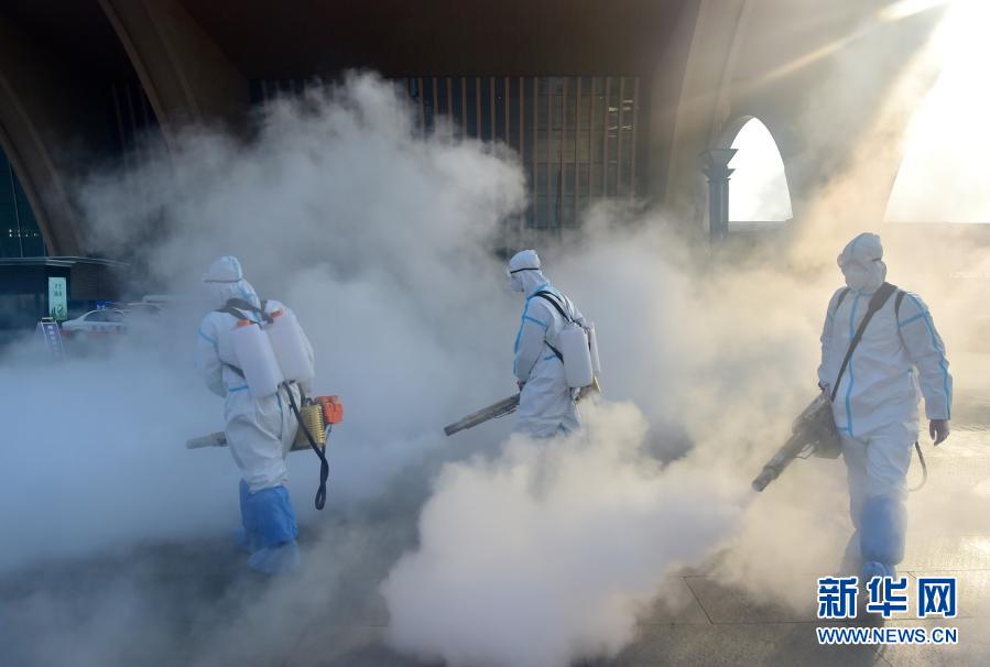 近日,河北石家庄市低风险区域实行常态化疫情防控,恢复正常生产生活秩序。为保障复工复产需求,石家庄市组织消杀队对石家庄火车站、客运站等重点公共区域外围进行全面消杀,保障人们出行安全。