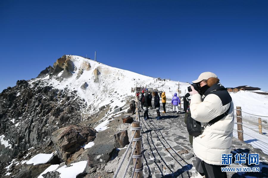 惊蛰节气已过,国内部分地区已春暖花开,但吉林省长白山景区仍被白雪覆盖,吸引不少游客前来游玩。